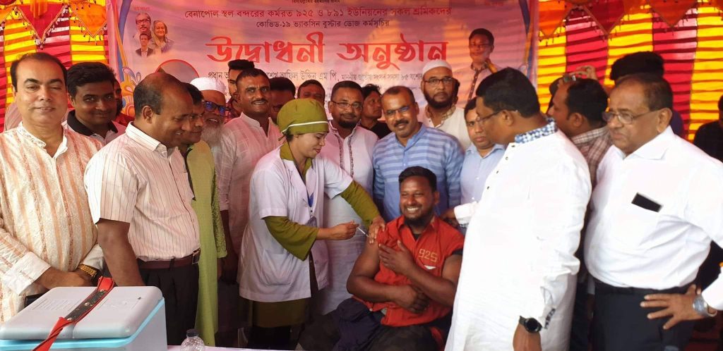বেনাপোলে হ্যান্ডলিং শ্রমিকদের জন্য বুস্টার ডোজের ভ্যাকসিন বুথ উদ্বোধন