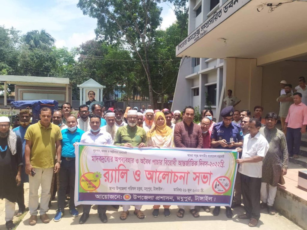 মধুপুরে মাদকদ্রব্যের অপব্যবহার ও অবৈধ পাচার বিরোধী আন্তর্জাতিক দিবস পালিত উপলক্ষে