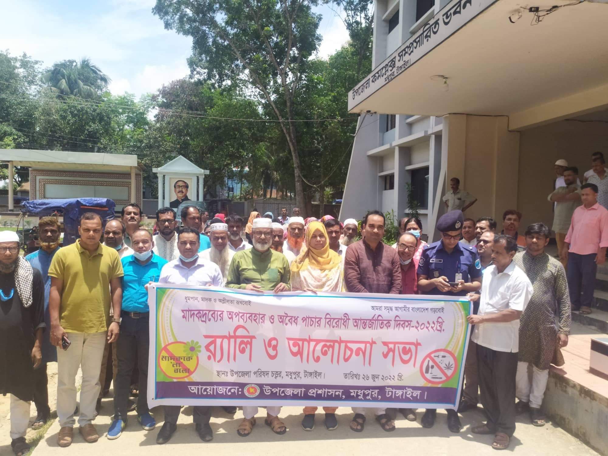 মধুপুরে মাদকদ্রব্যের অপব্যবহার ও অবৈধ পাচার বিরোধী আন্তর্জাতিক দিবসে শোভাযাত্রা