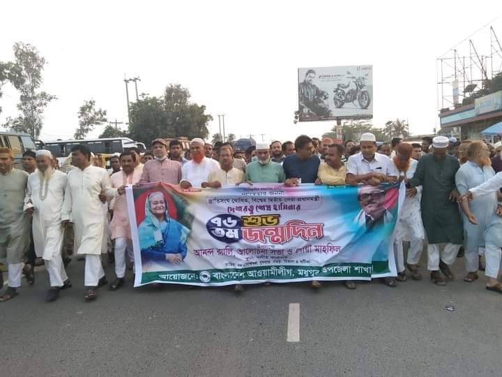 টাঙ্গাইলের মধুপুরে ব্যাপক উৎসাহ উদ্দীপনার মধ্য দিয়ে গনপ্রজাতন্ত্রী বাংলাদেশ সরকারের মাননীয় প্রধানমন্ত্রী গণতন্ত্রের মানসকণ্যা, জাতিসংঘের ঘোষিত ২য় সেরা প্রধানমন্ত্রী দেশরতত্ন শেখ হাসিনার ৭৬তম জন্মবার্ষিকী উপলক্ষ্যে আলোচনা সভা, কেক কাটা ও দোয়া মাহফিল অনুষ্ঠিত হয়েছে। বুধবার (২৮ সেপ্টেম্বর) বিকেলে মধুপুর উপজেলা আওয়ামী লীগের আয়োজনে আনন্দ র্যালী, আলোচনা সভা কেককাটা ও দোয়া মাহফিলের মধ্য দিয়ে এই কর্মসুচি বাস্তবায়ন করেন। বিকেলে উপজেলা আওয়ামীলীগের আয়োজনে দলীয় কার্যালয় হতে এক আনন্দ র্যালী বের হয়ে মধুপুর শহরের প্রধান প্রধান সড়ক প্রদক্ষিণ করে। সড়ক প্রদক্ষিণ শেষে আনন্দ র্যালীটি দলীয় কার্যালয়ে এসে শেষ হয়। সন্ধায় মধুপুর বাসস্টান্ড এলাকায় দলীয় কার্যালয়ে এক আলোচনা সভা অনুষ্ঠিত হয়।