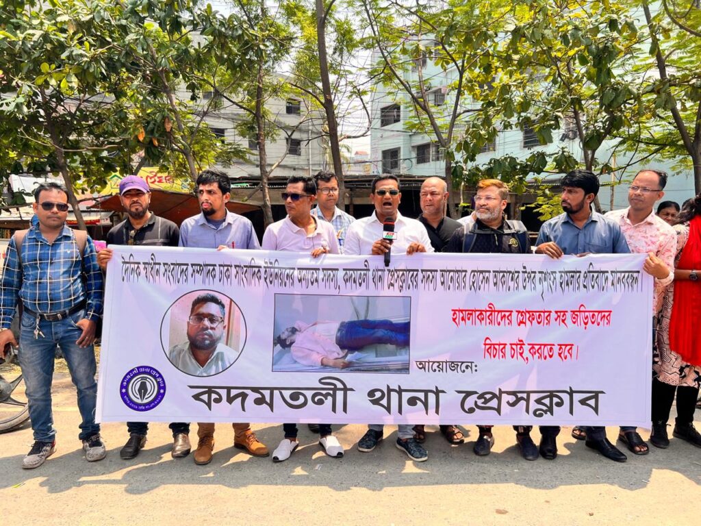 সাংবাদিক নির্যাতনের প্রতিবাদে কদমতলী থানা প্রেস ক্লাবের মানববন্ধন অনুষ্ঠিত