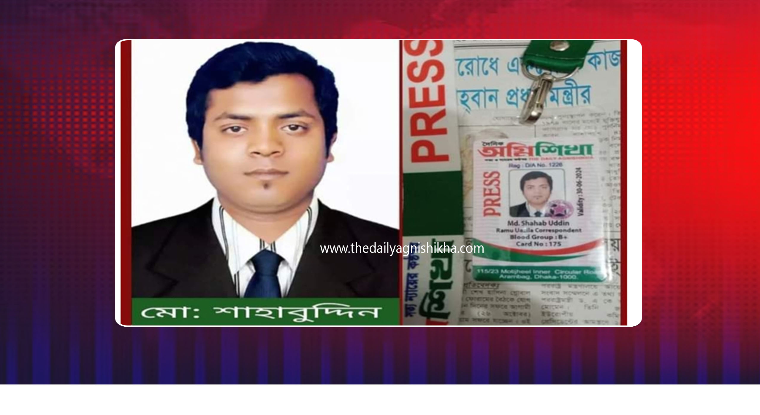একটি ঘোষণা সকলের অবগতির জন্য জানানো যাচ্ছে,যে ঢাকা থেকে প্রকাশিত জাতীয় দৈনিক অগ্নিশিখা পত্রিকার কক্সবাজারের রামু উপজেলা প্রতিনিধি শাহাবুদ্দিন শিকদারকে ৩-৬-২০২৪ইং থেকে পত্রিকার সকল ধরনের কার্যক্রম থেকে অব্যাহতি প্রদান এবং তার আইডি কার্ড বাতিল করা হলো । সে কোন বেআইনি কর্মকান্ড বা অপরাধ করে থাকে তার দায়ভার একান্তই তার অতএব তার সাথে দৈনিক অগ্নিশিখা পত্রিকার কোন সংশ্লিষ্টতা নেই।