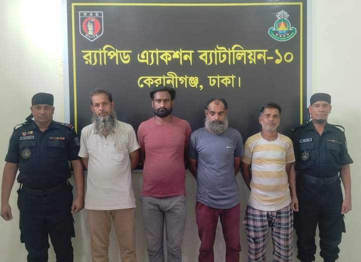কেরানীগঞ্জে অভিযান চালিয়ে চাঁদাবাজ চক্রের চার সদস্য কে গ্রেফতার করেছে র‌্যাব-১০