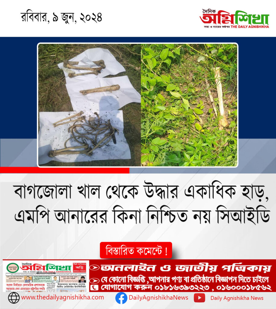 সিআইডির তরফ থেকেও বিষয়টি নিশ্চিত করে জানানো হয়েছে, বাগজোলা খালে অভিযান চালিয়ে বিভিন্ন আকারের বেশ কিছু হাড় উদ্ধার করা হয়েছে। যেগুলো মানুষের হাড় বলে মনে করা হচ্ছে।’