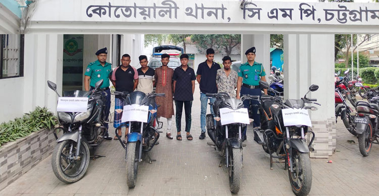চট্টগ্রামে মোটরসাইকেল চুরিতে প্রিপেইড সিন্ডিকেটের সন্ধান পেয়েছে কোতোয়ালী থানা পুলিশ। বৃহস্পতিবার নগরীর বিভিন্ন এলাকা থেকে চক্রের ছয় সদস্যকে গ্রেফতার করা হয়েছে। উদ্ধার করা হয়েছে বিভিন্ন ব্র্যান্ডের চারটি দামি মোটরসাইকেল।