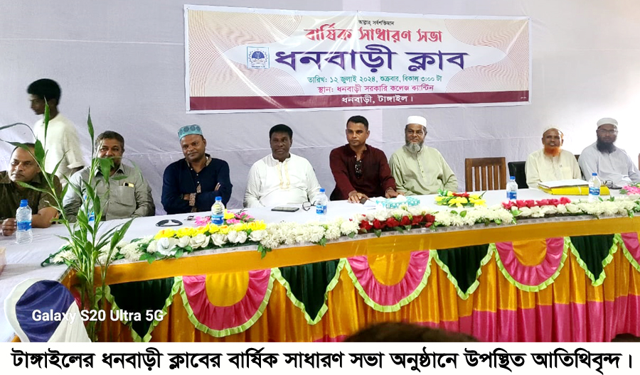 টাঙ্গাইলের ধনবাড়ীতে ধনবাড়ী ক্লাবের বার্ষিক সাধারণ সভা অনুষ্ঠিত হয়েছে। শুক্রবার(১২ জুলাই) বিকেলে সরকারী ধনবাড়ী কলেজের কনফারেন্স রুমে এ সভা অনুষ্ঠিত হয়।