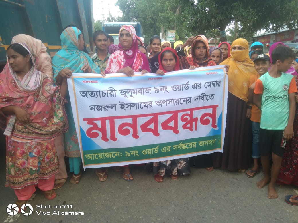 শ্রীপুরে নজরুলের বিরুদ্ধে এলাকাবাসীর মানববন্ধন।