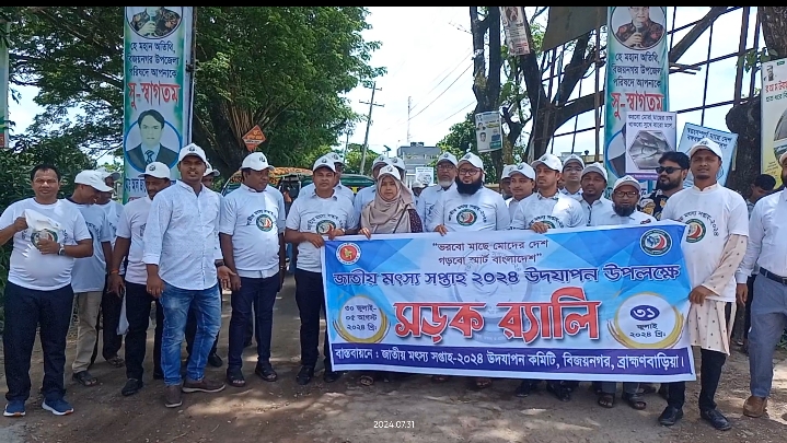 শাহনেওয়াজ শাহ্, ব্রাহ্মণবাড়িয়া প্রতিনিধিঃ সারাদেশের ন্যায় ব্রাহ্মণবাড়িয়ার বিজয়নগরে জাতীয় মৎস্য সপ্তাহ ২০২৪ উদযাপন কমিটি বিজয়নগর এর আয়োজনে জাতীয় মৎস্য সপ্তাহ ২০২৪ উদযাপন উপলক্ষে র্যালী, উদ্ভোদনী অনুষ্ঠান ও আলোচনা সভা অনুষ্ঠিত হয়েছে। ৩১ জুলাই, বুধবার সকাল ১১টায় "ভরবো মাছে মোদের দেশ, গড়বো স্মার্ট বাংলাদেশ" এই স্লোগান নিয়ে উপজেলা পরিষদের সামনে থেকে একটি র্যালি বের হয় উপজেলা চত্বর ঘুরে উপজেলা মডেল মসজিদের সামনের পুকুরে পোনা মাছ অবমুক্তকরণ করা হয়। পরে উপজেলা মাধ্যমিক শিক্ষা অফিসার আল মামুন এর সঞ্চালনায় ও উপজেলা নির্বাহী অফিসার সৈয়দ মাহবুবুল হক এর সভাপতিত্বে উপজেলা পরিষদ হল রুমে আলোচনা সভা অনুষ্ঠিত হয়। আলোচনা সভার শুরুতে স্বাগত বক্তব্য রাখেন, উপজেলা মৎস্য কর্মকর্তা জায়মান জাহান। এসময় বক্তারা বলেন, আমরা মাছে ভাতে বাঙালি। মাছ আমাদের পুষ্টি নিশ্চিত করে। মাছ শিশুদের মেধা বিকাশ করে। বিজয়নগরের মাছ চাষীদের বিভিন্ন সুযোগ সুবিধা দিয়ে উৎসাহিত করতে...
