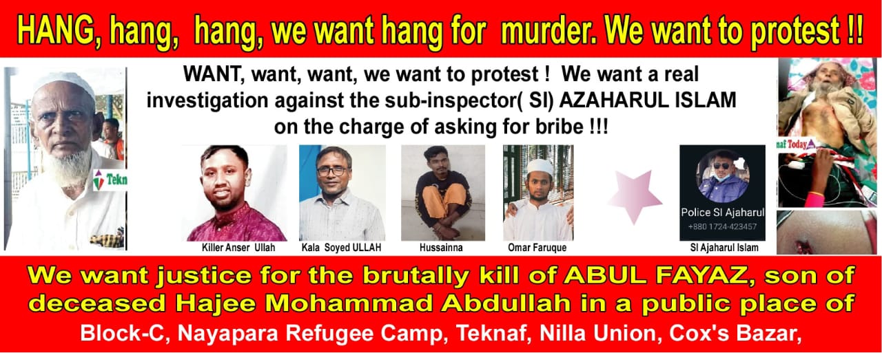 আইনের সেবক হিংস্র আজারুল হাত থেকে বাঁচতে ও জড়িত অপরাধীদের দৃষ্টান্তমূলক শাস্তির দাবি ভুক্তভোগীর পরিবার রোহিঙ্গা শরণার্থী ও সচেতন এলাকাবাসীর।