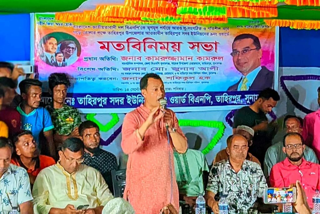 স্থানীয় ইউপি সদস্য ও ৯নং ওয়ার্ড বিএনপির সভাপতি শফিকুল হকের সভাপতিত্বে ও যুবদল নেতা আব্দুল আজিজের সঞ্চালনায় সভায় প্রধান অতিথির বক্তব্য রাখেন সুনামগঞ্জ-১ আসনে বিএনপির মনোনয়ন প্রত্যাশী সুনামগঞ্জ জেলা বিএনপির সাংগঠনিক সম্পাদক ও তাহিরপুর উপজেলা পরিষদের সাবেক চেয়ারম্যান কামরুজ্জামান কামরুল।