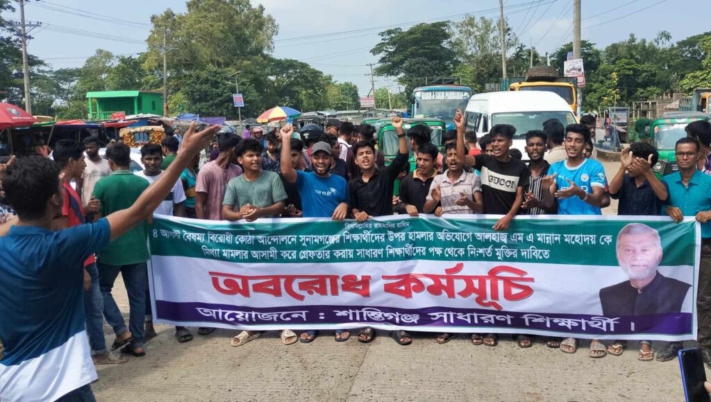 সুনামগঞ্জে সাবেক পরিকল্পনামন্ত্রী এম এ মান্নানকে জেলহাজতে প্রেরণ, শিক্ষার্থীদের সড়ক অবরোধ