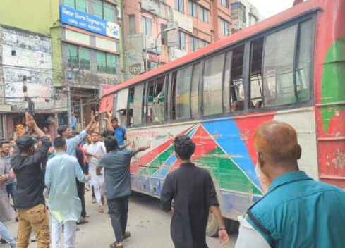 মহাখালীতে বাস ভাঙচুর তিতুমীর শিক্ষার্থীদের, সড়ক অবরোধ