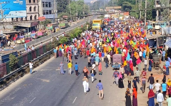 বকেয়া বেতনসহ বিভিন্ন দাবিতে ঢাকা-টাঙ্গাইল মহাসড়ক অবরোধ