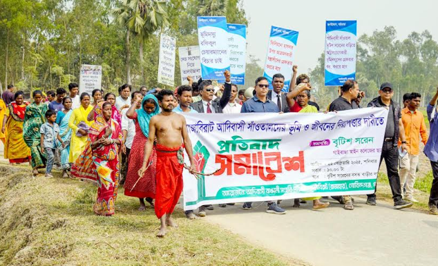 ভূমি ও জীবনের নিরাপত্তা চেয়ে সাঁওতালদের প্রতিবাদ সমাবেশ