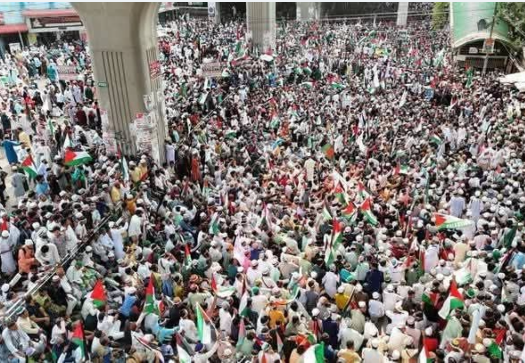 অগ্নিশিখা প্রতিবেদক: ফিলিস্তিনের গাজা, ভারত ও রোহিঙ্গাসহ সারাবিশ্বের নিপীড়িত মুসলিমের পক্ষে সংহতি জানাতে রাজধানীর জাতীয় প্রেসক্লাবকে কেন্দ্র করে আশেপাশের এলাকায় প্রায় অর্ধলাখ মানুষের জমায়েত হয়েছে। এই জমায়েতর ফলে প্রেসক্লাব এলাকায় ভোর থেকে সকাল সোয়া ১১টা পর্যন্ত যান চলাচল বন্ধ ছিল।