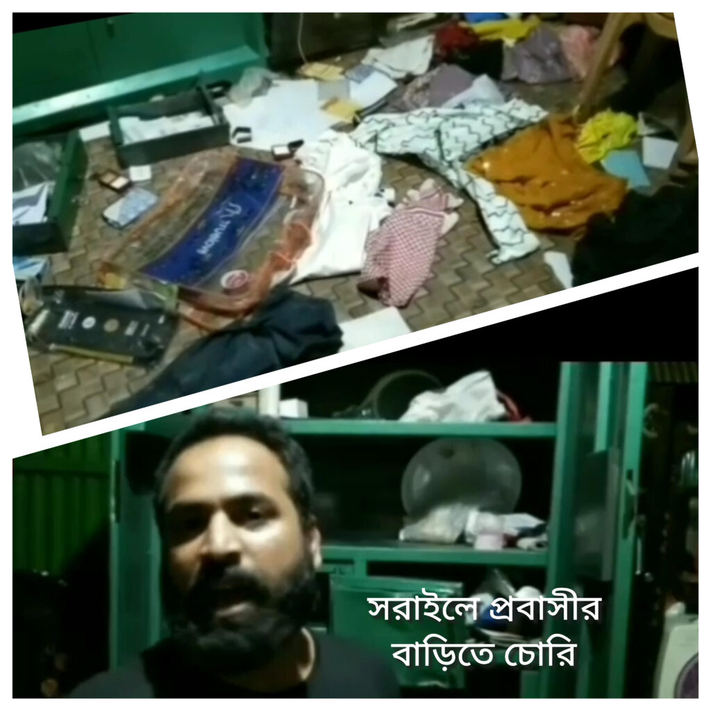 এরপর আমার শোর চিৎকার স্থানীয় এলাকাবাসীরা এগিয়ে আসে এবং দেখতে পাই আমার বিদেশ থেকে আনা নগদ অর্থ স্বর্ণালংকার প্রায় চোদ্দ লক্ষ টাকার মালামাল নিয়ে গেছে। ঘটনা সূত্রপাত ধরে স্থানীয় এলাকাবাসী চেয়ারম্যান মেম্বারগণ সহ তদন্ত করে চোরকে শনাক্ত করে এবং লিখিত দেই। এরপর আমার মালামাল ফিরত দিবে এই মর্মে চোরের মা ও চাচা জামাল মিয়া তিন দিনের সময় নেই কিন্তু আমি এখনো কোনো মালামাল ফেরত পাইনি। তাই আমি আমার মালামাল ফেরত পাওয়ার জন্য সরাইল থানায় মামলা করি।