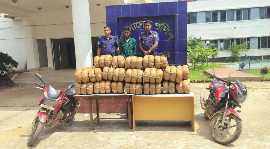জেলা ব্রাহ্মণবাড়িয়া বিজয়নগর থানাধীন ৮নং বিষ্ণুপুর ইউনিয়নের দুলালপুর সাকিনস্থ ৪ নং ওয়ার্ড জনৈক হাবিব ভূইয়ার বসত ঘরের সামনে। সূত্রে জানা যায় রোজ শনিবার ৯ই আগষ্ট ২০২৫খ্রি. তারিখে ২.৩০ ঘটিকার সময় পুলিশ পরিদর্শক (নিরস্ত্র)/শহীদুল ইসলাম,অফিসার ইনচার্জ, বিজয়নগর থানা’র নেতৃত্বে এসআই/মাহবুব আলম সরকার, এএসআই(নিরস্ত্র)/শাহাদাত হোসেন ও সঙ্গীয় ফোর্স সহ বিজয়নগর থানা এলাকায় মাদক বিরোধী অভিযান পরিচালনা করে। ঘটনাস্থল হইতে ধৃত আসামী (১)মোঃ আরমান মিয়া (২১), পিতা-মোঃ মাসুম মিয়া, মাতা-রিনা বেগম, সাং-কালাছড়া, ইউপি-বিষ্ণুপুর, থানা-বিজয়নগর, জেলা-ব্রাহ্মণবাড়িয়া’র দখল ও হেফাজত হইতে ১৭০ কেজি গাঁজা ও মাদক পরিবহনে ব্যবহৃত ২টি মোটর সাইকেল উদ্ধার করে । উক্ত আলামত বিধি মোতাবেক তালিকা মূলে জব্দ করা হয়। ধৃত আসামীকে উক্ত আলামত সহ গ্রেফতার করিয়া জিজ্ঞাসাবাদে তাহার সহযোগী পলাতক আসামী- (২) মাসুম মিয়া (২৪), পিতা-শাহ আলম, মোঃ ইয়াসিন (৩০), পিতা-শাহ আলম, উভয় সাং-পশ্চিম কালাছড়া, (৩) মোঃ আরিফ (২৪), পিতা-মোঃ সেলিম মিয়া, (৪)মোঃ হাবিব ভূইয়া (২৮), পিতা- হাজী বিলাত আলী ভূইয়া, উভয় সাং-দুলাল পুর, সর্ব থানা-বিজয়নগর, জেলা-ব্রাহ্মণবাড়িয়া সহ অজ্ঞাতনামা ৩/৪ জনের নাম ঠিকানা প্রকাশ করে। এ বিষয়ে বিজয়নগর থানা অফিসার ইনচার্জ জনাব মোঃ শহিদুল ইসলাম দৈনিক ফ্রন্টিয়ার.নিউজ প্রতিনিধি কে জানান,বিজয়নগর থানা এলাকা মাদক সেবন বন্ধে,মাদক কারবারী বন্ধে,অন্য এলাকা হইতে যাহাতে বিজয়নগর থানা এলাকা থেকে মাদক নিয়ে যাওয়া বন্ধে এর অংশ এই অভিযান। বিজয়নগর থানার ,এফআইআর নং-২২, তারিখ- ০৯ আগস্ট, ২০২৫; জি আর নং-৩২০, তারিখ- ০৯ আগস্ট, ২০২৫; ধারা- ৩৬(১) সারণির ১৯(গ)/৩৮/৪১ মাদকদ্রব্য নিয়ন্ত্রণ আইন, ২০১৮; মামলা দায়ের করা হয়।ধৃত আসামী, পলাতক আসামী ও অজ্ঞাতনামা আসামীদের বিরুদ্ধে অত্র থানায় মাদক আইনে নিয়মিত মামলা রুজু করা হয়েছে।আসামি বিজ্ঞ আদালতের মাধ্যমে কোট হাজতে সপোর্দ করা হয়েছে। বিজয়নগর থানা এলাকা আইনশৃঙ্খলা রক্ষা ও মাদকের বিরুদ্ধে আমাদের অভিযান অব্যাহত আছে। দায়িত্ব পালনে আমরা সচেষ্ট আছি।
