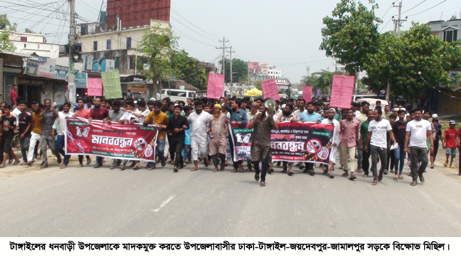ধনবাড়ীতে মাদক মুক্ত করার দাবীতে মানববন্ধন