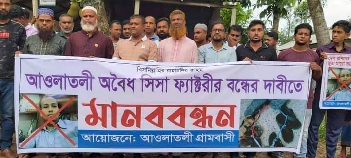 সীসা ফ্যাক্টরী বন্ধের দাবীতে এলাকাবাসীর মানববন্ধন