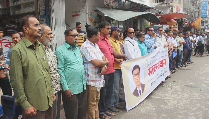সাংবাদিক আব্দুল বারী হত্যার প্রতিবাদে পাবনায় মানববন্ধন
