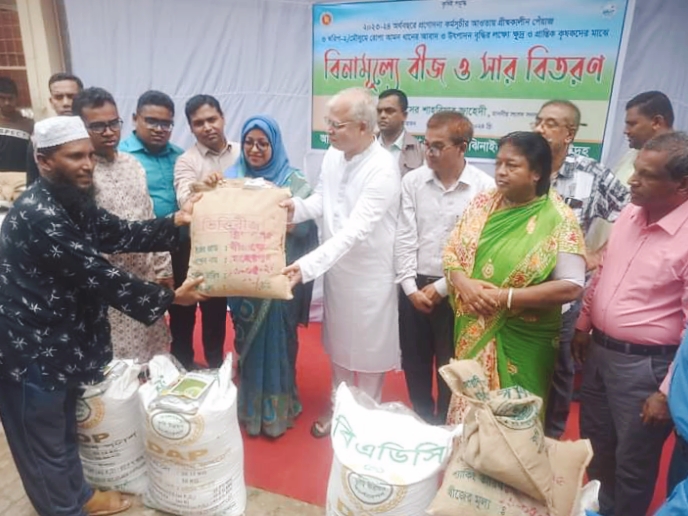 ঝিনাইদহে ২৪’শ কৃষকের মাঝে সার ও বীজ বিতরণ