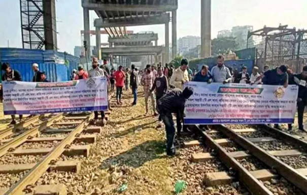 তেজগাঁওয়ে রেলপথ অবরোধ, ট্রেন চলাচল বন্ধ