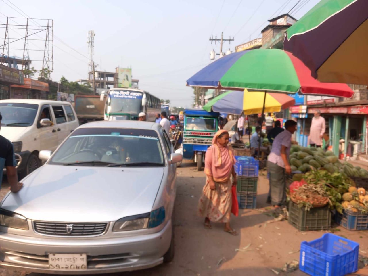 ওসমানীনগরে গাড়ি পার্কিং আর ফুটপাত দখলে সংকীর্ণ হচ্ছে সড়ক ও মহাসড়ক