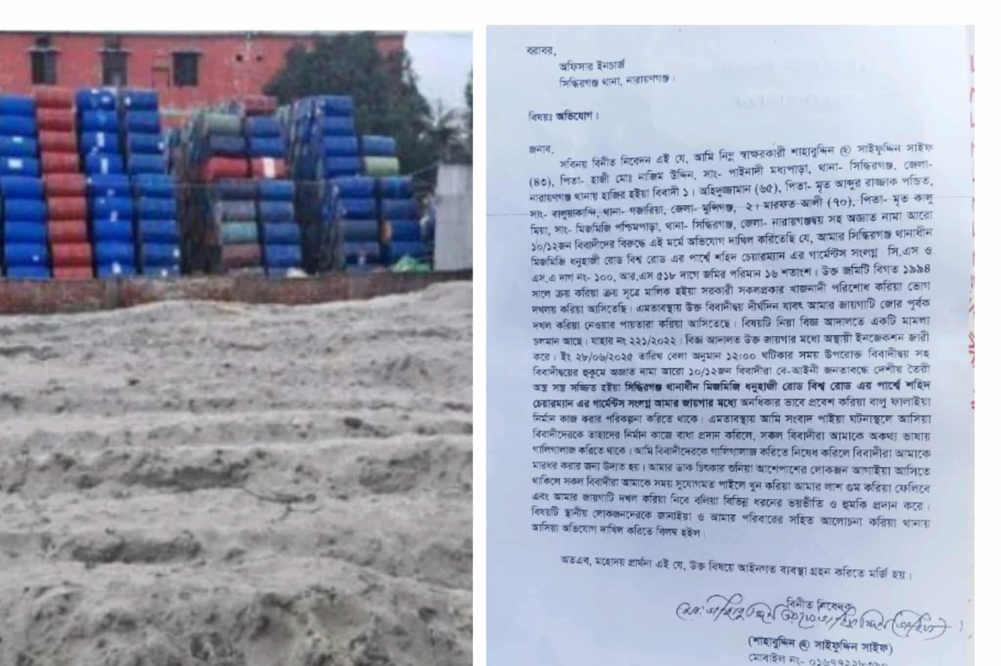 চাঁদাবাজ ভূমিদস্যু ও দখলবাজদের বিরুদ্ধে সিদ্ধিরগঞ্জ থানায় অভিযোগ করছে ভুক্তভোগী শাহাব উদ্দীন