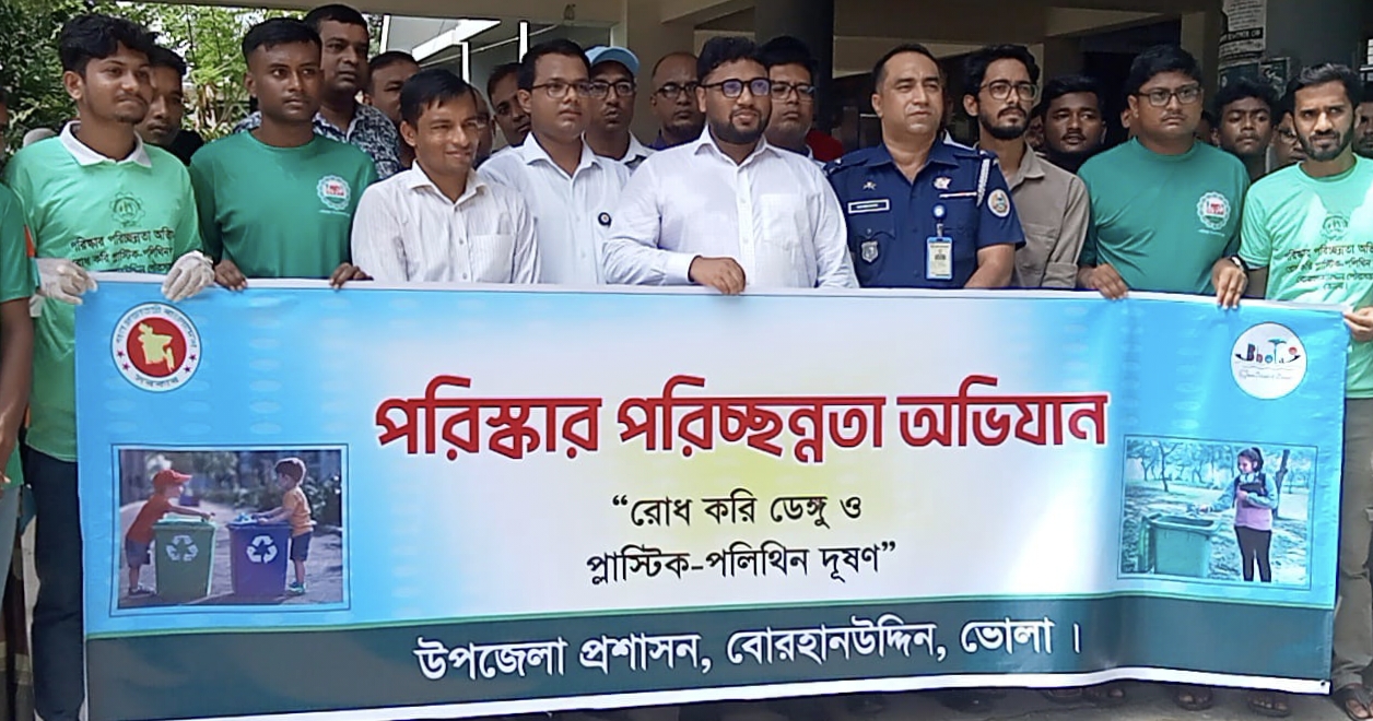 বোরহানউদ্দিন পৌরসভার উদ্যোগে পরিষ্কার পরিচ্ছন্নতা অভিযান