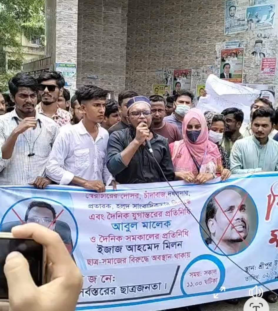 গাজীপুরের শ্রীপুরে দলকানা ও হলুদ সাংবাদিকদের বিরুদ্ধে মানববন্ধন অনুষ্ঠিত হয়েছে।