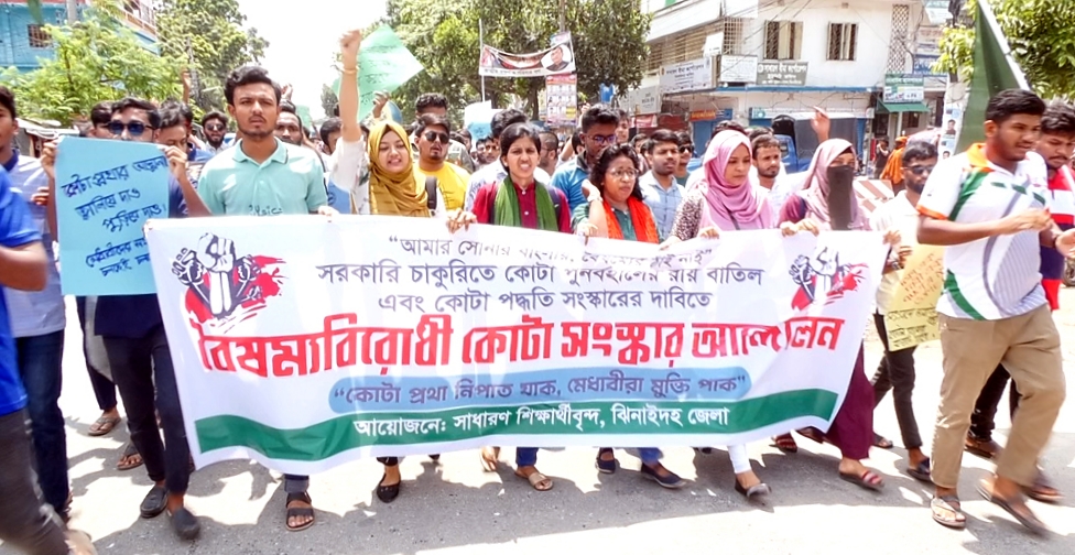 ঝিনাইদহে কোটা বিরোধীদের পদযাত্রা ও সমাবেশ