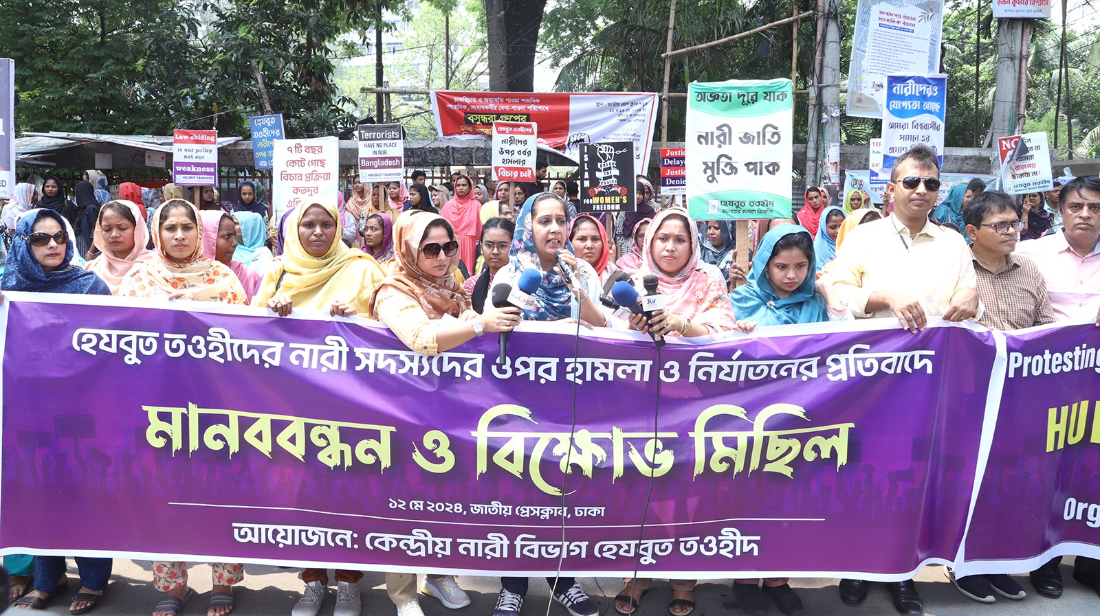 নারীদের ওপর হামলা ও নির্যাতনের প্রতিবাদে জাতীয় প্রেসক্লাবে মানববন্ধন