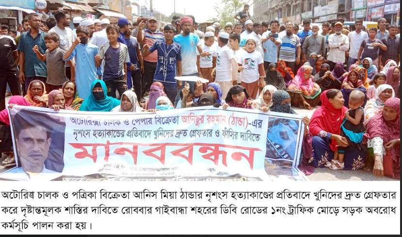 আনিস হত্যাকান্ডের খুনিদের গ্রেফতার ও দৃষ্টান্তমূলক শাস্তির দাবিতে মানববন্ধন ও সড়ক অবরোধ
