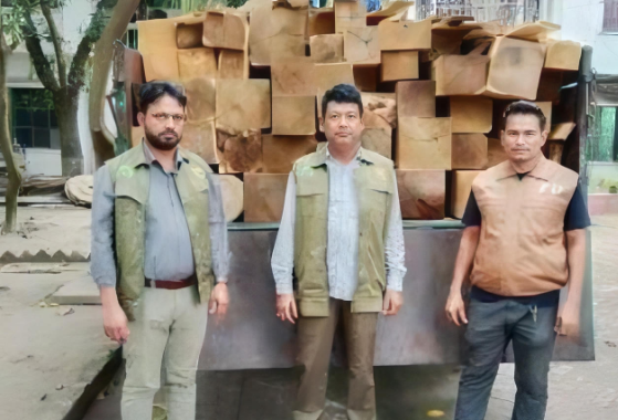 সোনারগাঁয়ে ফরেস্ট চেক পোস্টে অবৈধ আকাশমনি রদ্দা কাঠ গাড়ীসহ আটক