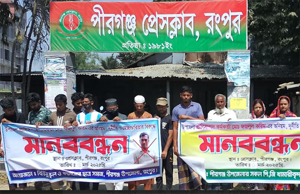 পীরগঞ্জে প্রাণী সম্পদ কর্মকর্তার বিরুদ্ধে মানববন্ধন