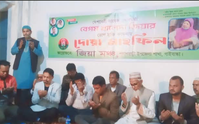 পলাশবাড়ীতে জিয়া মঞ্চের আয়োজনে বেগম খালেদা জিয়ার রোগ মুক্তি কামনায় দোয়া মাহফিল