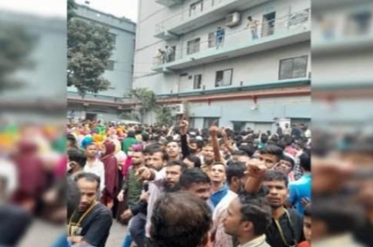 নারায়ণগঞ্জের ছুটিকালীন ১০০%ভাতার দাবিতে গার্মেন্টস শ্রমিকদের আন্দোলন