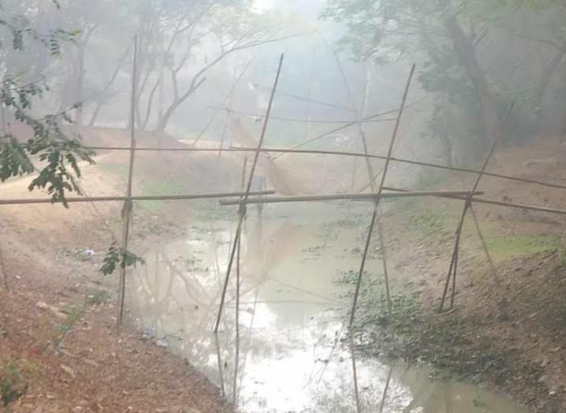 ওসমানীনগরে বাঁশের শাকো দিয়ে পারাপার