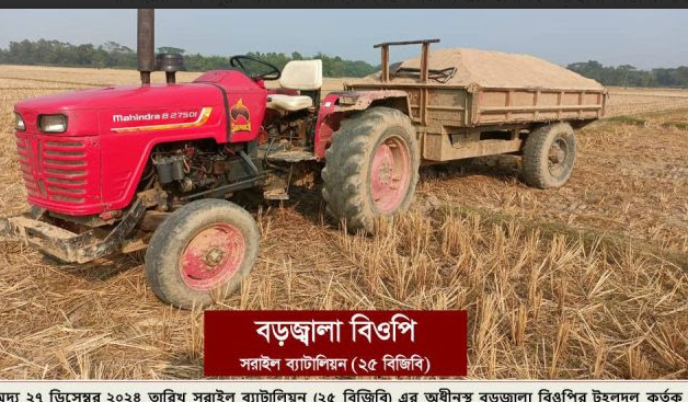 হবিগঞ্জে সরাইলে অবৈধভাবে বালু উত্তোলনে বালু সহ ট্রাক্টর আটক