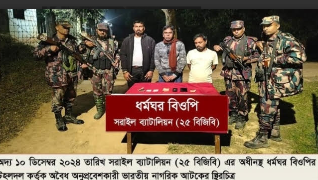 সরাইল অবৈধ অনুপ্রবেশের দায়ে ভারতীয় নাগরিক ৩ জন আটক